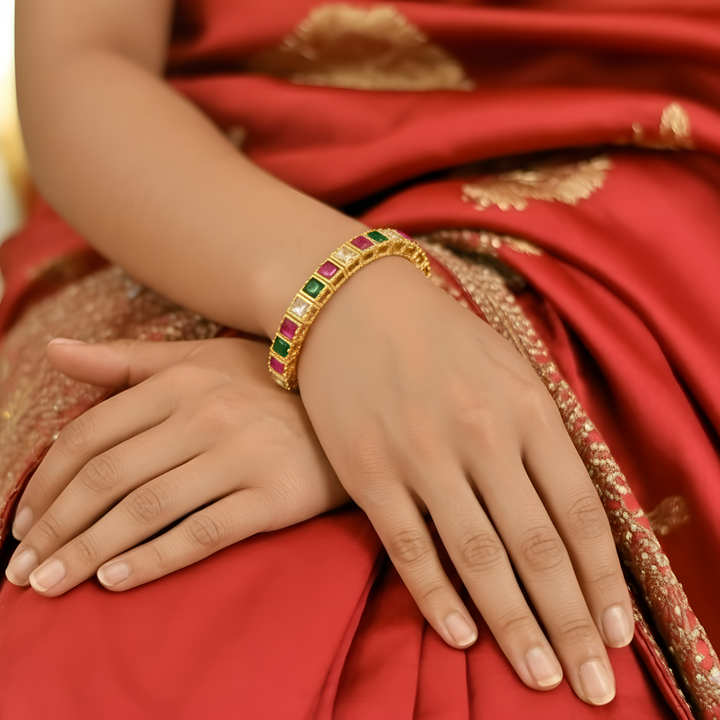 These bangles work with everything—team them with a silk saree for festive flair, or wear them against a plain shirt for subtle office elegance. Stack a pair for a fuller effect, or go solo for clean lines; they shine against deep reds, soft creams, and everyday basics. From family events to casual coffee runs, they keep your vibe timeless and true.