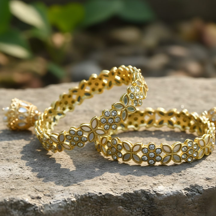 These bangles work with everything—team them with a silk saree for festive flair, or wear them against a plain shirt for subtle office elegance. Stack a pair for a fuller effect, or go solo for clean lines; they shine against deep reds, soft creams, and everyday basics. From family events to casual coffee runs, they keep your vibe timeless and true.