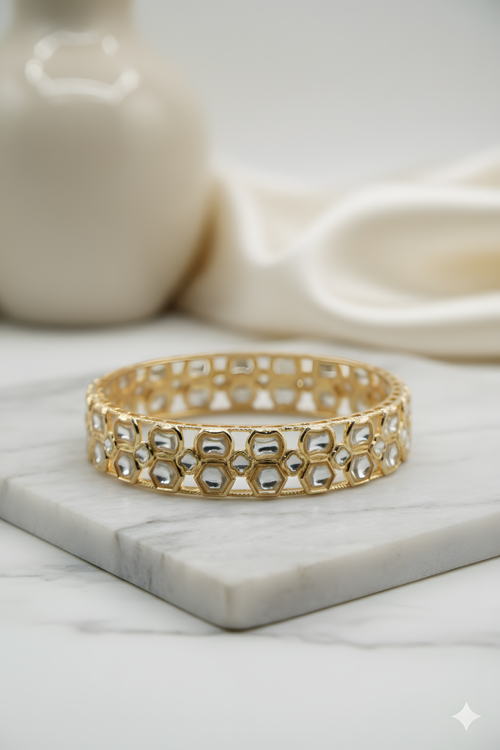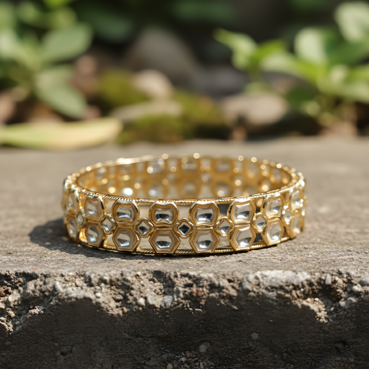 Discover the Timeless Elegance of Our Gold Plated with Kundan Studded Bangle