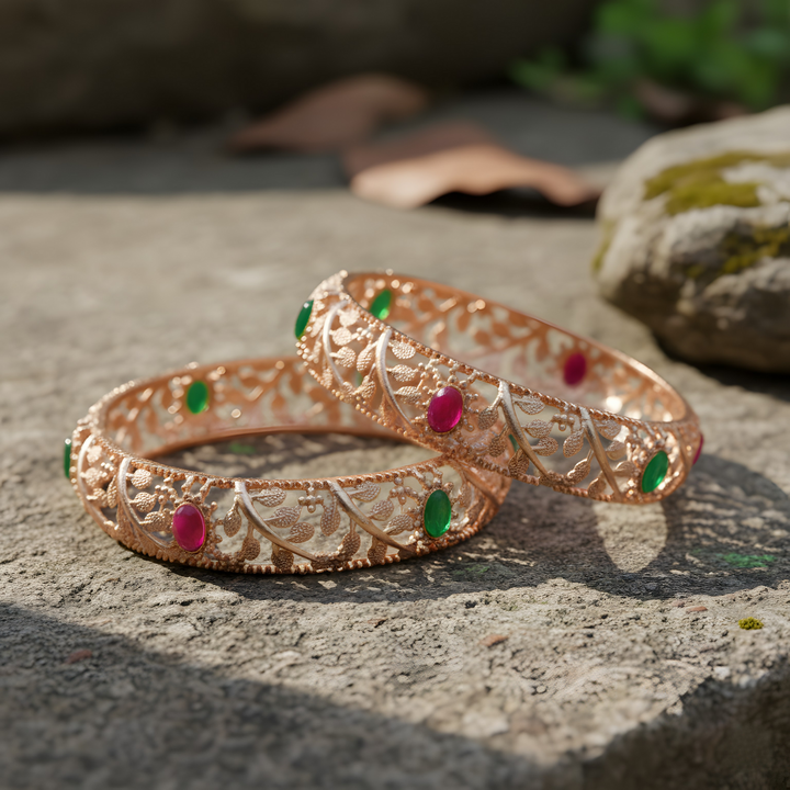 Gold Plated Bangles with Gemstones and Pearls - Elevate Your Elegance