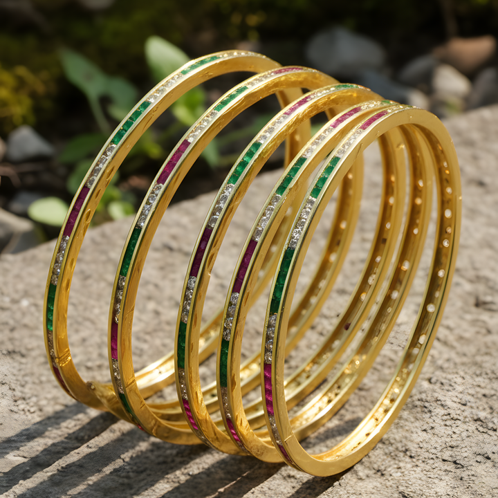 Looking for that perfect gift? The Luxury Gold-Plated Bangle with radiant ruby-red and emerald-green stones is an ideal choice for birthdays, anniversaries, or special milestones. The elegant design coupled with the shimmering stones makes for a memorable present that your loved one can cherish for years to come.