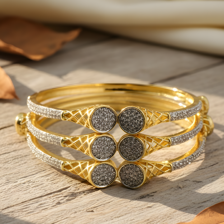 Add a touch of brilliance to your style with this stunning Elegant Golden-Plated Bangles for Women from Victorian Jaipur. Crafted with precision, it features high-quality Luxury Golden Bangle with Silver Stone Accents in a gleaming silver-plated base, offering a perfect blend of elegance and sparkle. The intricate design reflects timeless craftsmanship, making it an ideal choice for festive occasions, weddings, or evening wear.