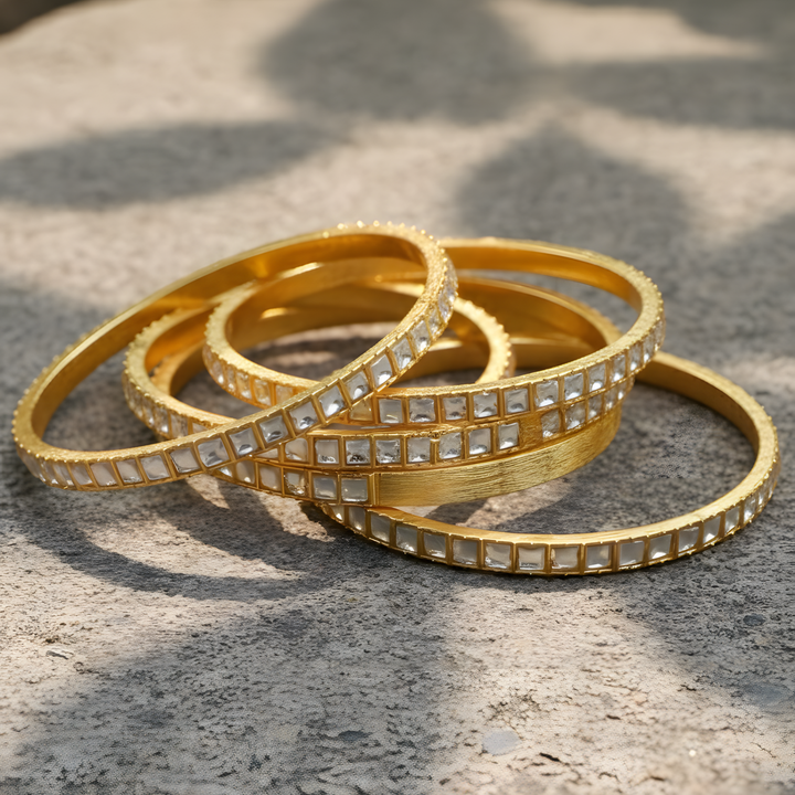 Traditional Gold Plated Bangles with Elegant White Stone Square Design
